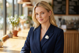 Broșa magnetică în formă de frunză are nuanțe de culoare frumoase. Este decorată cu pietre strălucitoare tăiate. Este alcătuită din două părți. Funcționează prin plasarea părții decorative a broșei pe partea din față a materialului și a roții cu magnet pe spatele materialului. Este potrivită pentru materiale mai rezistente, deoarece nu are ac, nu va deteriora materialul prin perforare . Puteți decora jachete, paltoane, eșarfe, pălării și genți de mână cu ea. Magneții sunt puternici , nu există riscul ca broșa să cadă ușor.